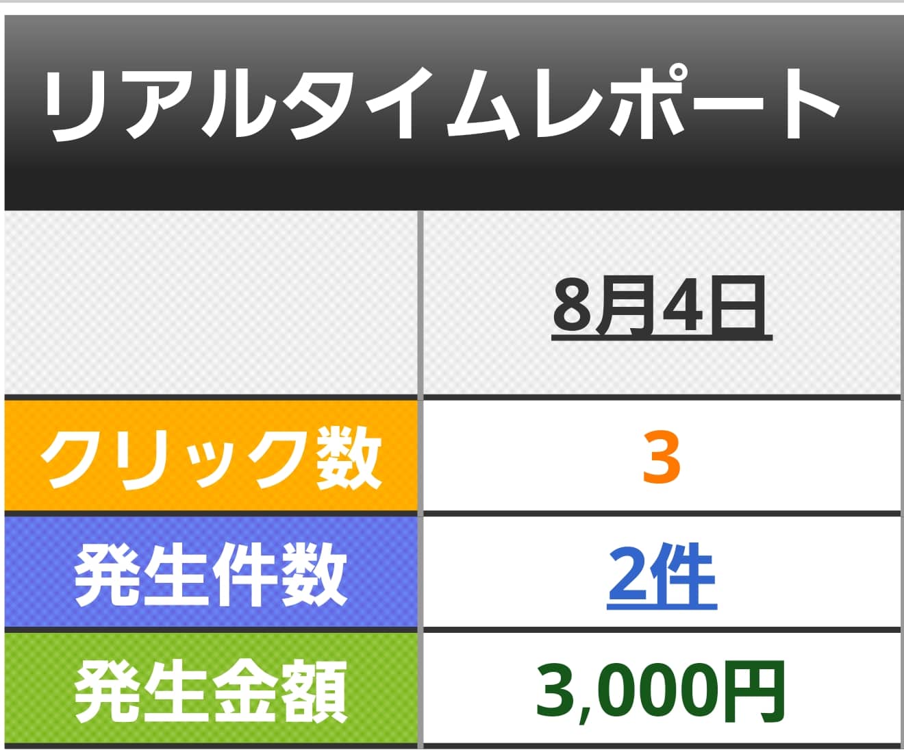 8月4日の今日は、2件の成約があった為に、3000円の収益が発生しております。